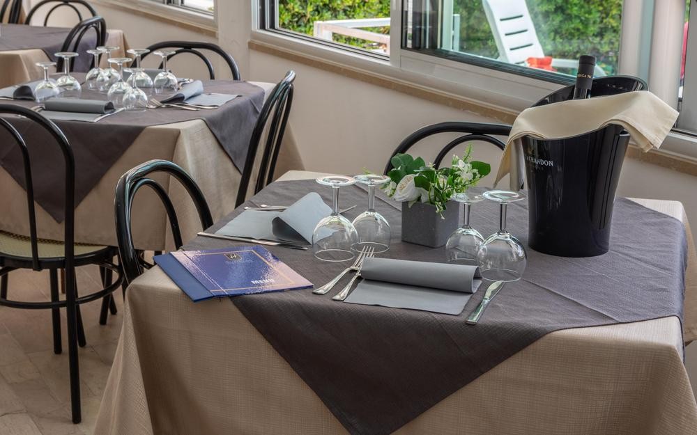 pensione completa + bevande ai pasti + utilizzo della piscina scoperta + servizio spiaggia