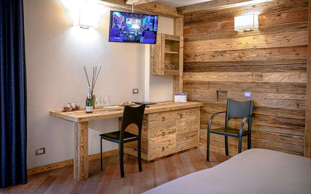 Le camere Standard dispongono di servizi privati, asciugacapelli, balcone, vista monte, telefono, TV satellitare, cassaforte, mini frigo (consumazioni a pagamento). Le camere quadruple dispongono anche di letto a castello.