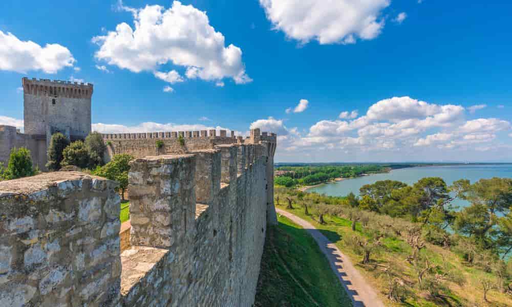 Castiglione del Lago si trova su un promontorio che si affaccia sul lago Trasimeno. Il borgo conserva ancora il suo aspetto medievale, grazie anche alla bellissima Rocca del Leone che domina dall’alto il paesaggio circostante. Da vedere anche la piccola Isola Polvese ricca di vegetazione e sede anch’essa di un suggestivo Castello medievale.