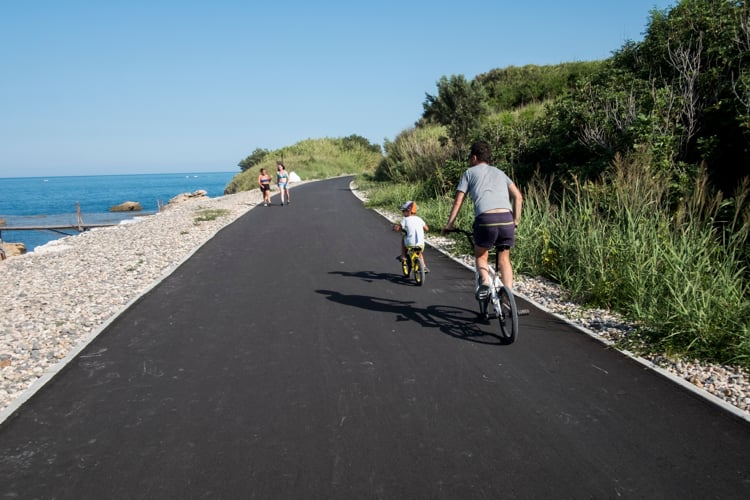 Questo è un tratto baciato dalla natura: davanti vi troverete il mare nella sua dimensione più selvaggia e pura, e dietro una piccola pineta tutta da scoprire e con la giusta organizzazione anche da sfruttare con un pic-nic o aperitivo. In questo caso il “ragno di legno” è diventato un meraviglioso ristorantino sospeso sul mare. La particolarità di poterla percorrere in bicicletta rende il tutto ancora più magico.