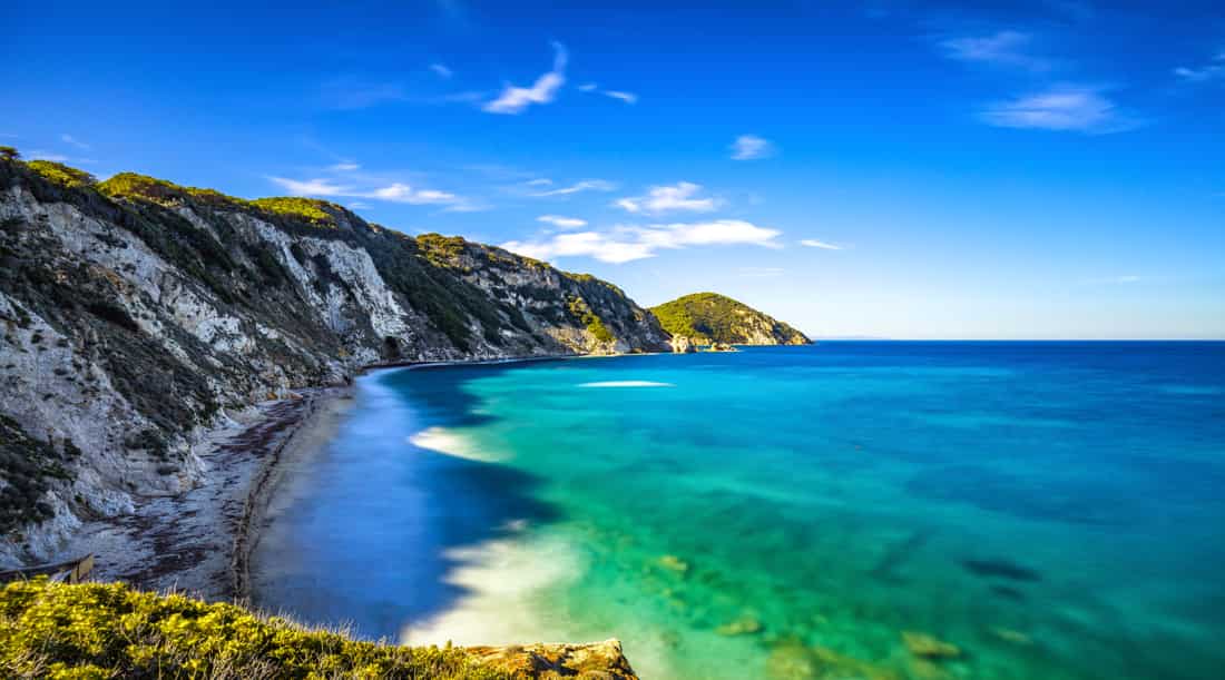 Circondata dal Mar Tirreno, baia di Fetovaia, sull’Isola d’Elba, con la sua spiaggetta chiara, la sabbia sottile di minuscoli granellini di granito e il mare limpido che diventa poi blu cobalto. In questo tratto di costa dell’isola si trovano anche la spiaggia di Cavoli e quella di Secchetto, altri due luoghi imperdibili e facilmente raggiungibili.