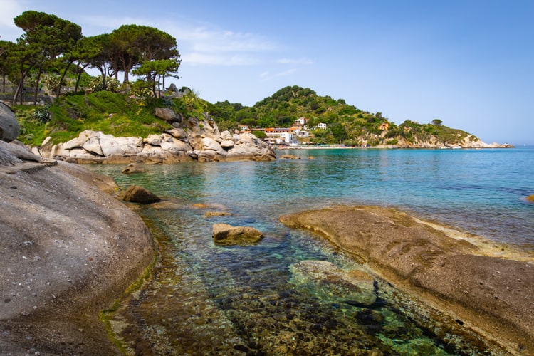 Il nostro tour verso le più belle spiagge dell’Isola d’Elba continua proseguendo per altri circa 4 chilometri. Si arriva a Marciana marina. E proprio alla fine della passeggiata sul lungomare, si apre una piccola spiaggetta, intima e fatta di grossi ciottoli (maschera e scarpette da scoglio le scelte migliori).