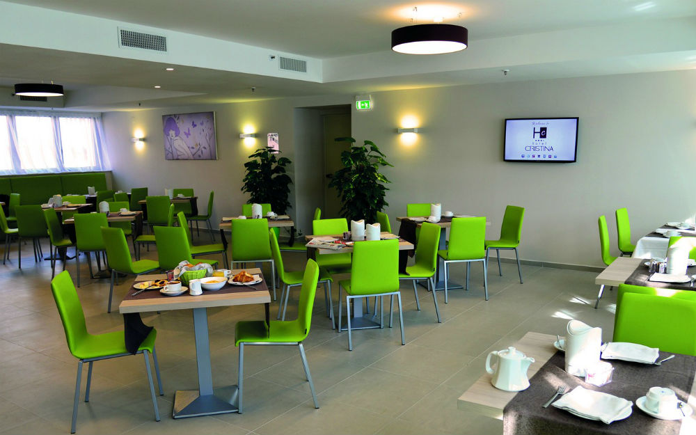 L'Hotel Cristina è dotato di: reception, bar, ristorante à la carte, deposito biciclette, ascensore, wi-fi, sala congressi e parcheggio.