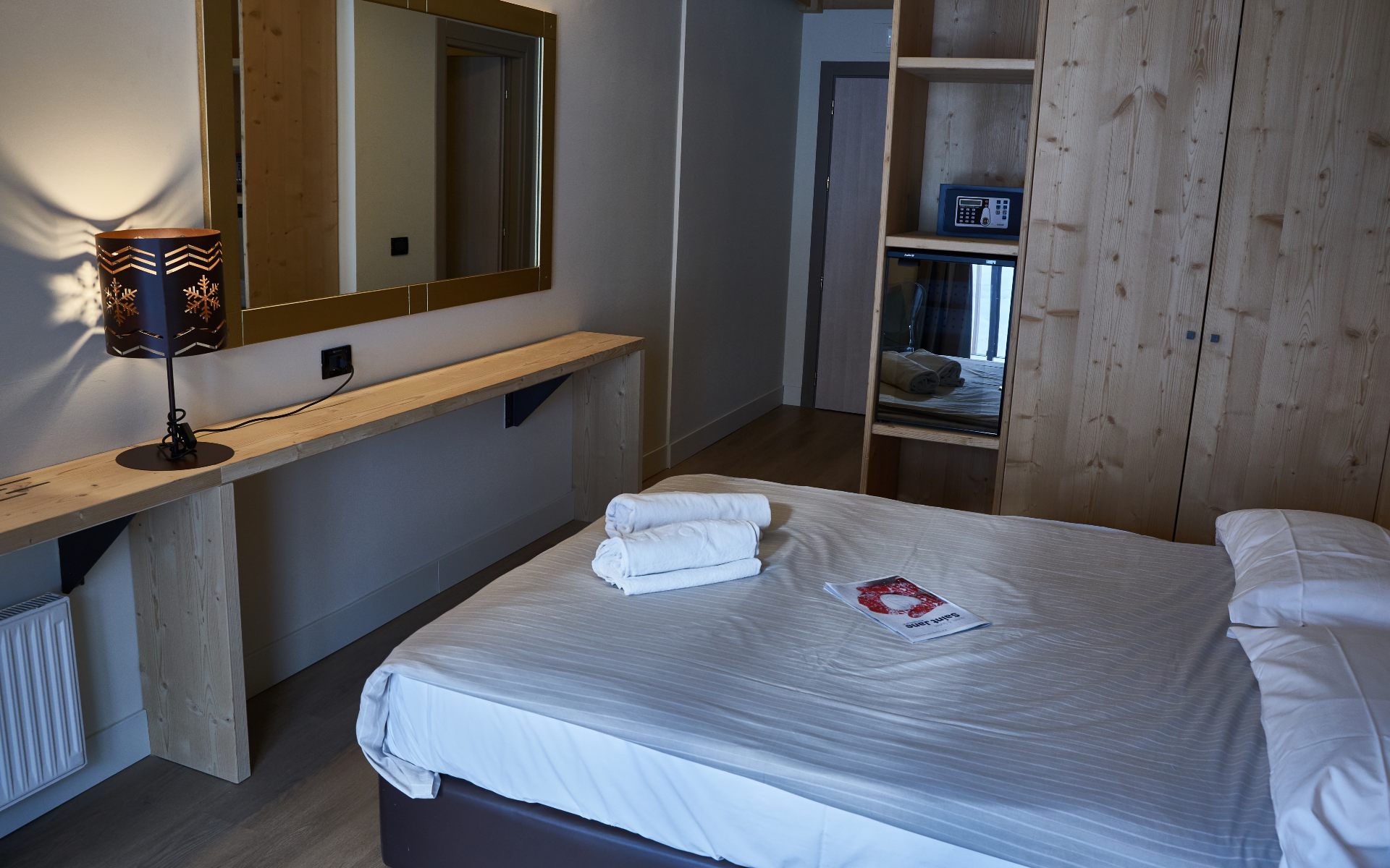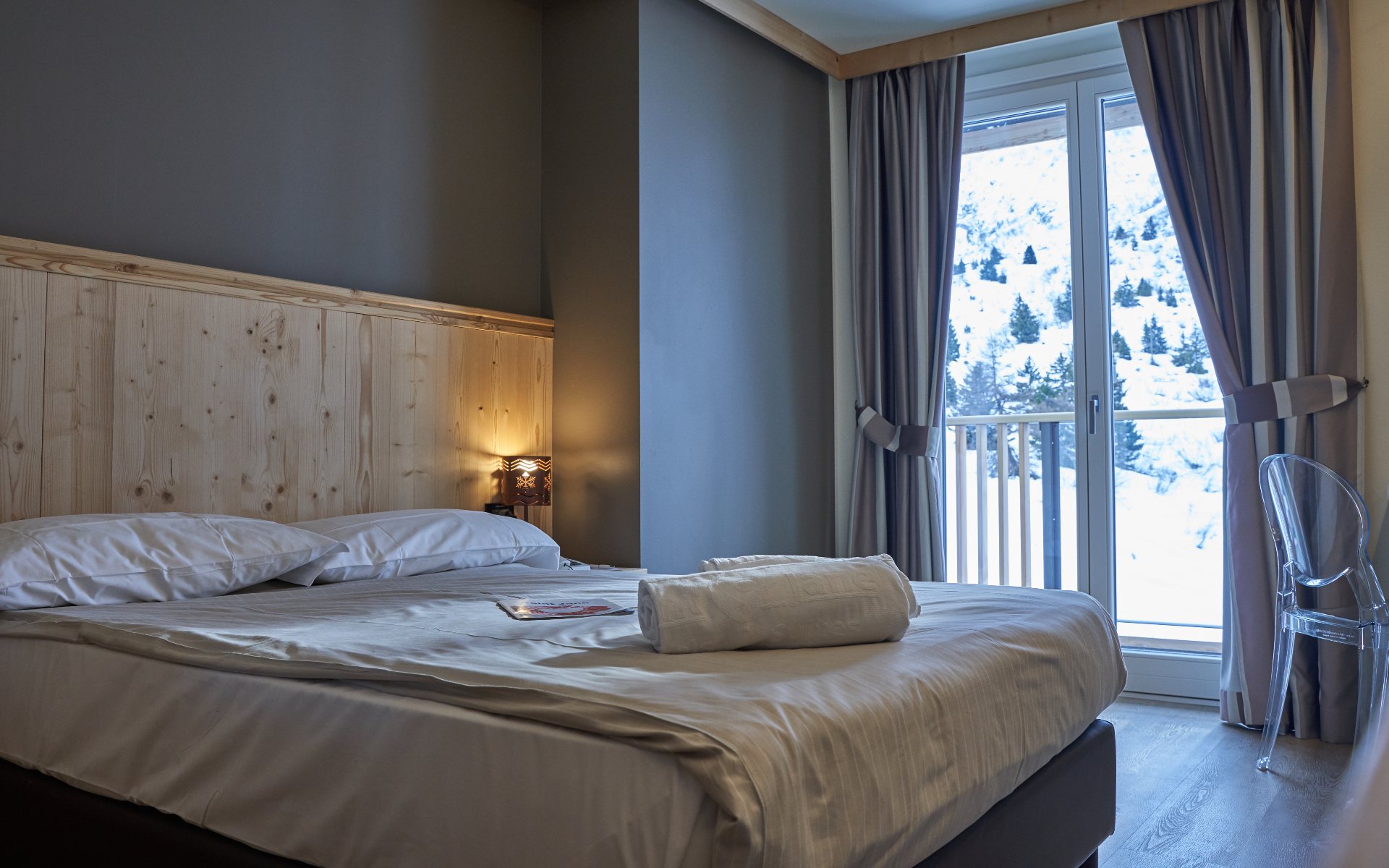 Tutte le camere, arredate nel pieno rispetto della tradizione montana, dispongono di servizi privati, asciugacapelli, telefono, TV satellitare, cassaforte, mini frigo (consumazioni a pagamento) e vista monte.