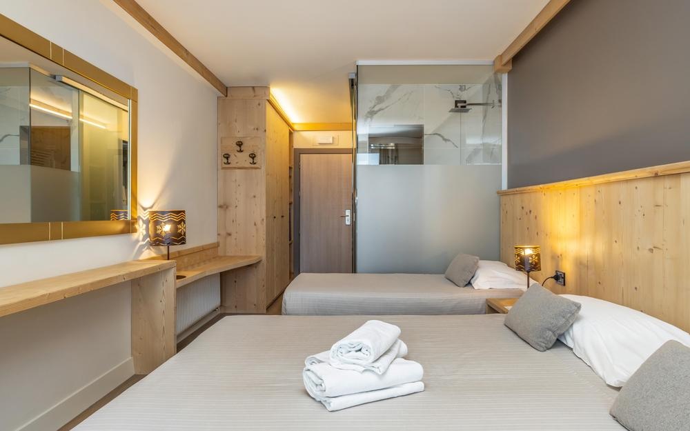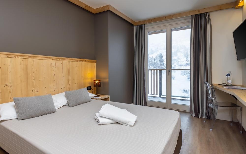 Tutte le camere, arredate nel pieno rispetto della tradizione montana, dispongono di servizi privati, asciugacapelli, telefono, TV satellitare, cassaforte, mini frigo (consumazioni a pagamento) e vista monte.
