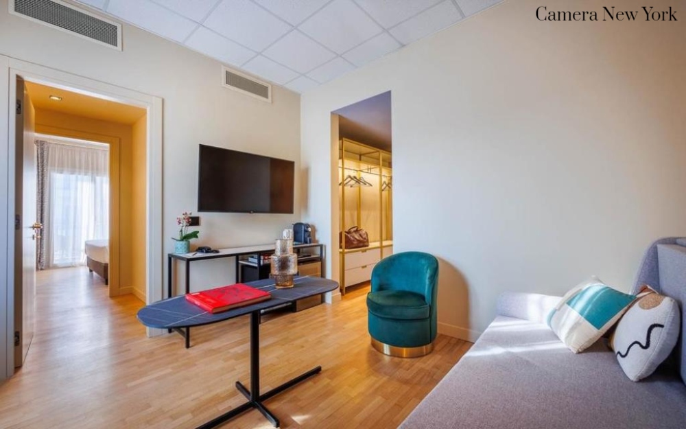 Le Junior Suite New York (ca. 42 mq.) sono dotate di servizi privati, asciugacapelli, accappatoio, 1 camera da letto separata, divano letto, minibar (consumazioni a pagamento), Smart TV, cassaforte, collegamento internet Wi-Fi, set per the e caffè e vista città.