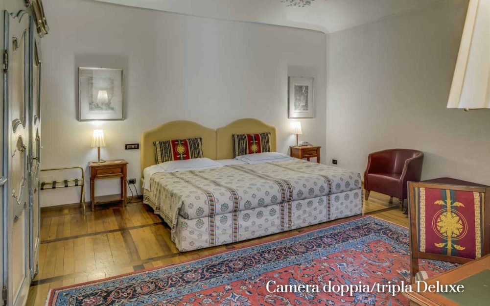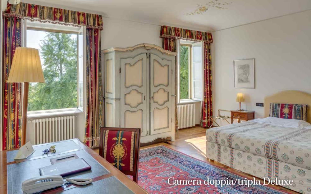 Le Camere Deluxe sono dotate servizi privati, asciugacapelli, aria condizionata, vista monte, vista giardino, telefono, TV satellitare, minibar (consumazioni a pagamento), cassaforte, collegamento internet Wi-Fi. Sono spaziose ed offrono ambienti curati che conservano il fascino secolare del maniero.