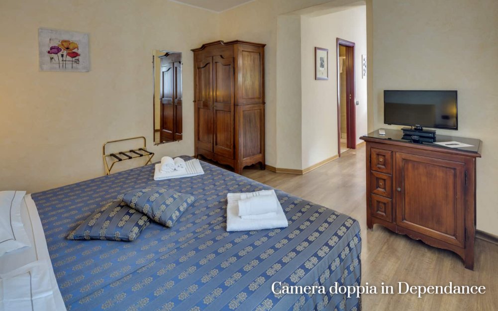 Le Camere Dependance sono dotate servizi privati, asciugacapelli, aria condizionata, vista monte, vista giardino, telefono, TV satellitare, minibar (consumazioni a pagamento), cassaforte, collegamento internet Wi-Fi. Sono situate in edifici staccati dal corpo centrale, ma poco distanti dall’ingresso principale ed offrono un ambiente sobrio ma molto curato.