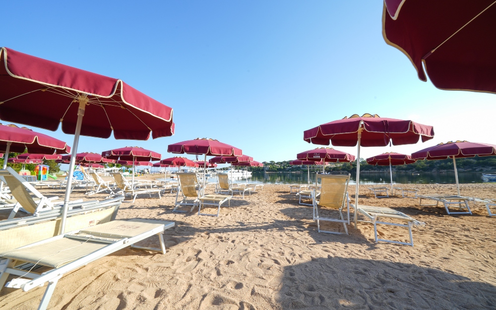 La piccola spiaggia di sabbia dista ca. 30 metri dall’hotel ed ha ampia disponibilità di ombrellone con sdraio e lettini, campo da beach volley e giochi per bambini. Il servizio spiaggia è incluso nella Tessera Club.