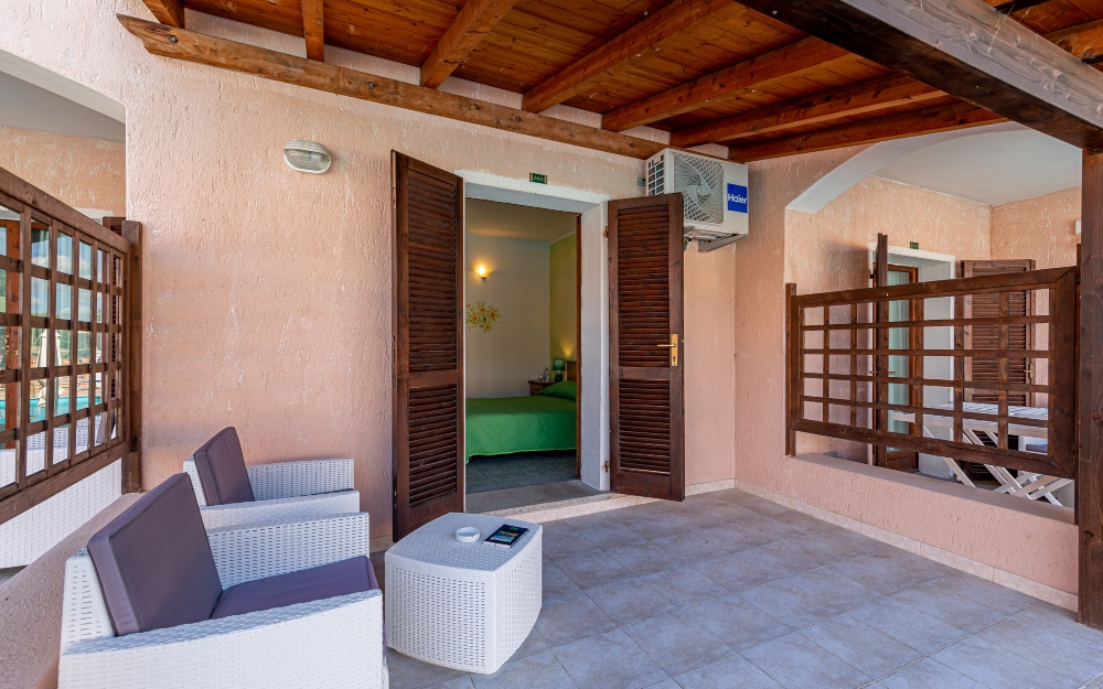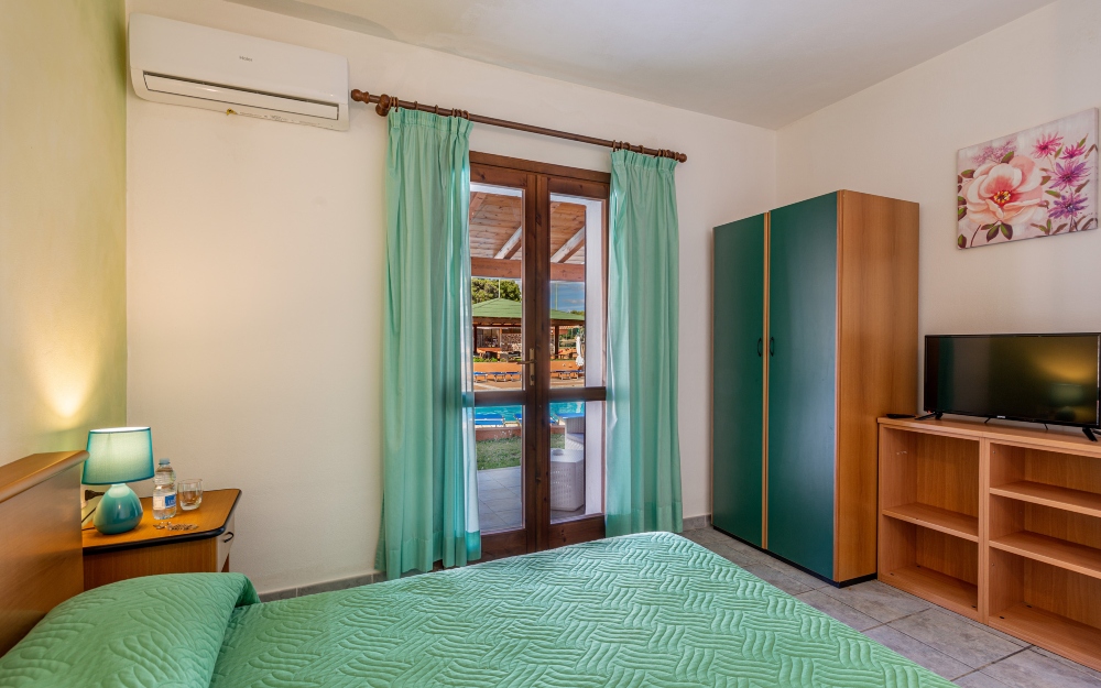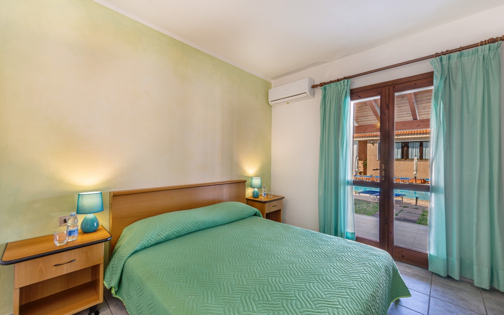 Le la struttura è composta di 60 unità abitative, di cui 38 camere di circa 16/18mq (per 2/3persone), con aria condizionata, tutte con patio o balcone. Le camere sono arredate in modo semplice ed essenziale, direttamente affacciate sul verde giardino. Dispongono tutte di frigo, cassaforte, Tv, doccia, asciugacapelli, patio o balcone attrezzati. Alcune sistemazioni sono comprese in un’area verde con pineta a soli 400 metri dal mare.