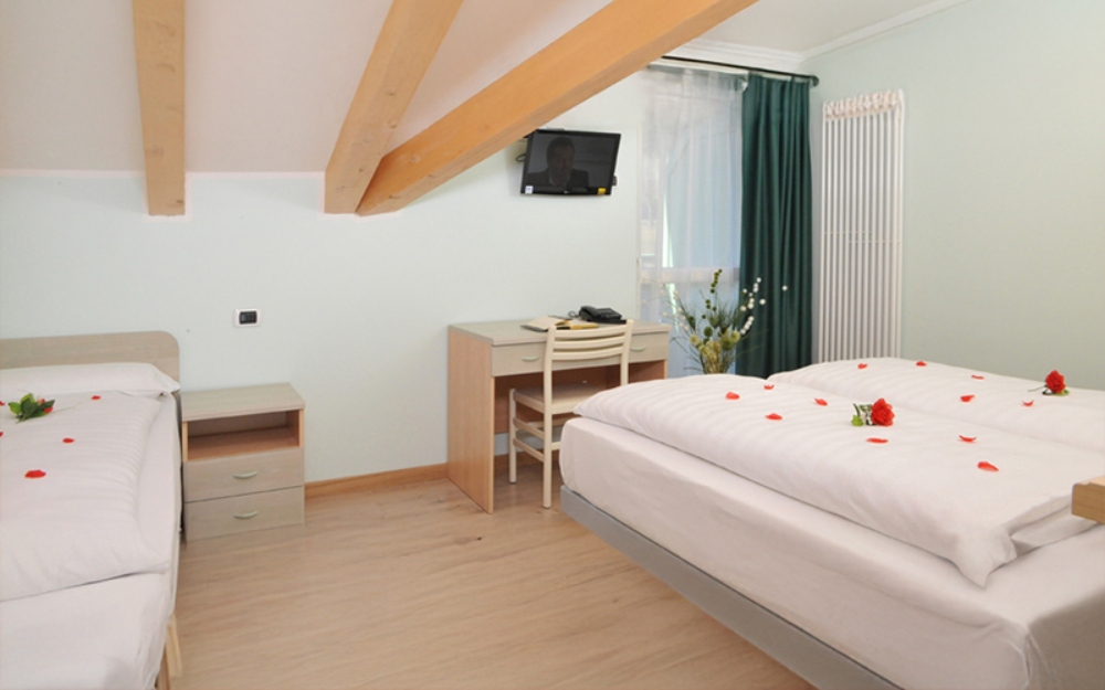 L’hotel si trova a ca. 2.5 Km dal carosello sciistico Folgarida-Marilleva-Madonna di Campiglio e dal centro di Dimaro, nel cuore della Val di Sole. La Val di Sole è una tipica vallata alpina del Trentino nord-occidentale, che si snoda lungo il corso del fiume Noce. La valle è attorniata da diversi gruppi montuosi: l'Ortles-Cevedale a nord, il gruppo del Brenta a sud e l'Adamello-Presanella ad ovest. La bellezza delle Dolomiti di Brenta in cui è immersa, rendono la Val di Sole il luogo ideale per vacanze in famiglia, d'estate infatti i numerosi sentieri presenti offrono la possibilità di escursioni e passeggiate di diversi livelli di difficoltà.