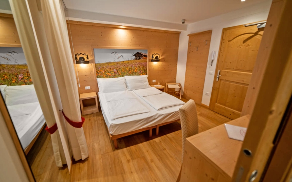 Le camere doppie hanno una superficie di 16 mq ca. mentre le camere triple/quadruple hanno una superficie di ca. 25 mq.
