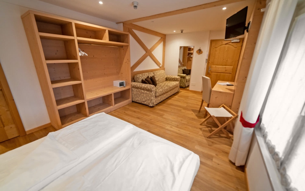 Le camere sono dotate di servizi privati, asciugacapelli, vista monte, TV, cassaforte, moquette, parquet, collegamento internet Wi-Fi.