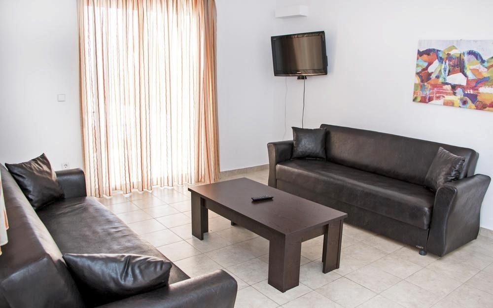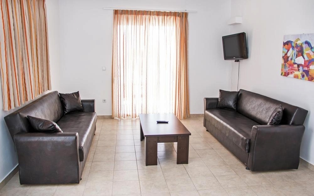 Gli appartamenti trilocali hanno occupazione massima 6 persone e metratura di ca. 80 mq. Sono dotati di doppio bagno, angolo cottura, bollitore per l’acqua, mini-frigo (consumazioni a pagamento), aria condizionata, TV satellitare, 2 camera da letto separata, collegamento internet wi-fi e balcone vista giardino.